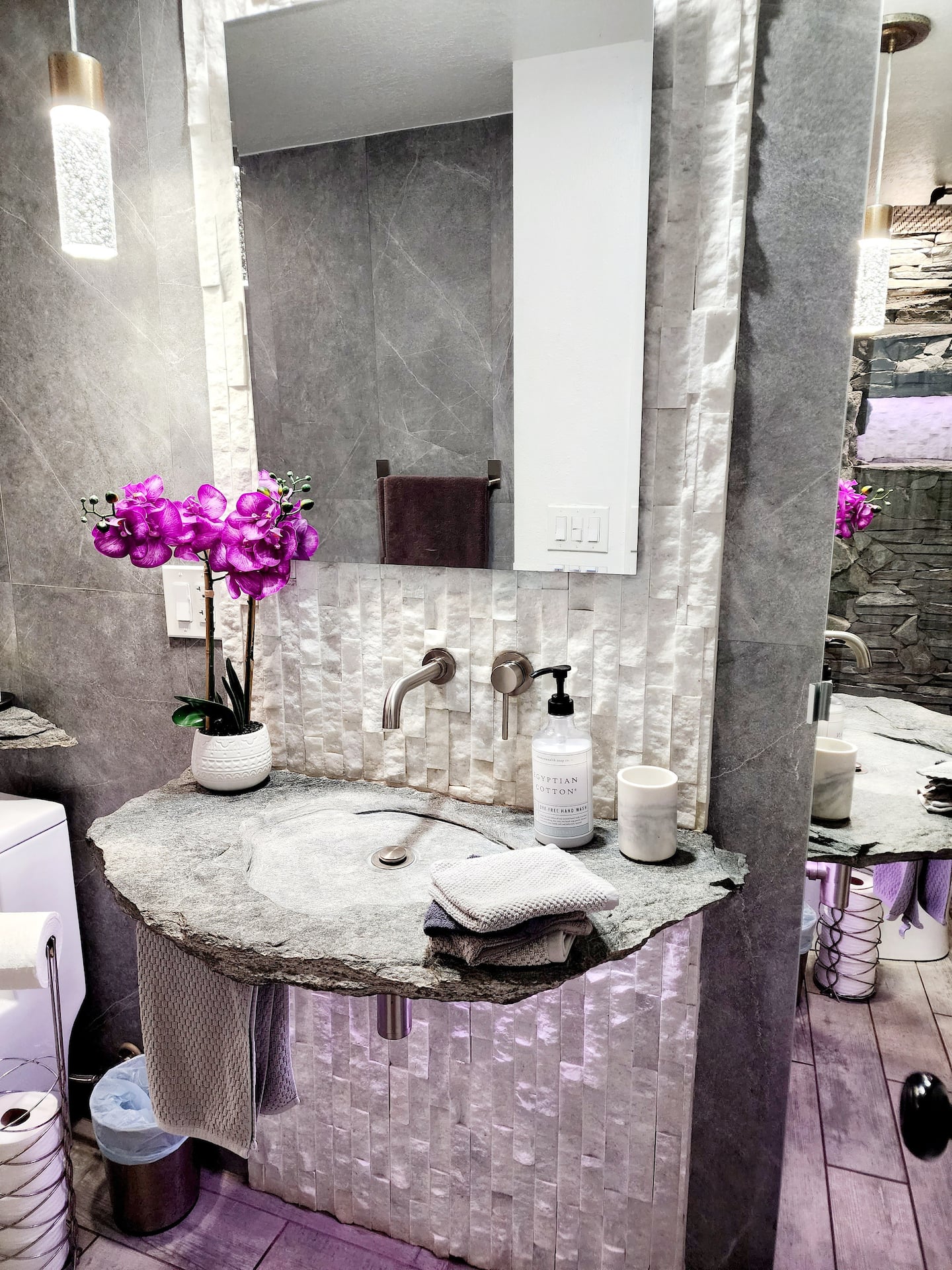 - Exquisite, unique design with natural stone and brick thematic anchors