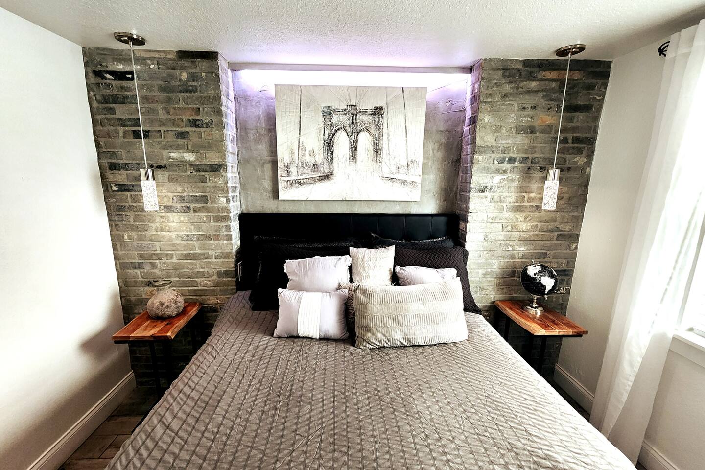Enjoy a unique experience in this beautifully designed apartment just a few blocks from Hyde Park and SoHo cafes, shops, and nightlife. Artfully designed with natural stone, brick, and custom craftsman elements throughout.